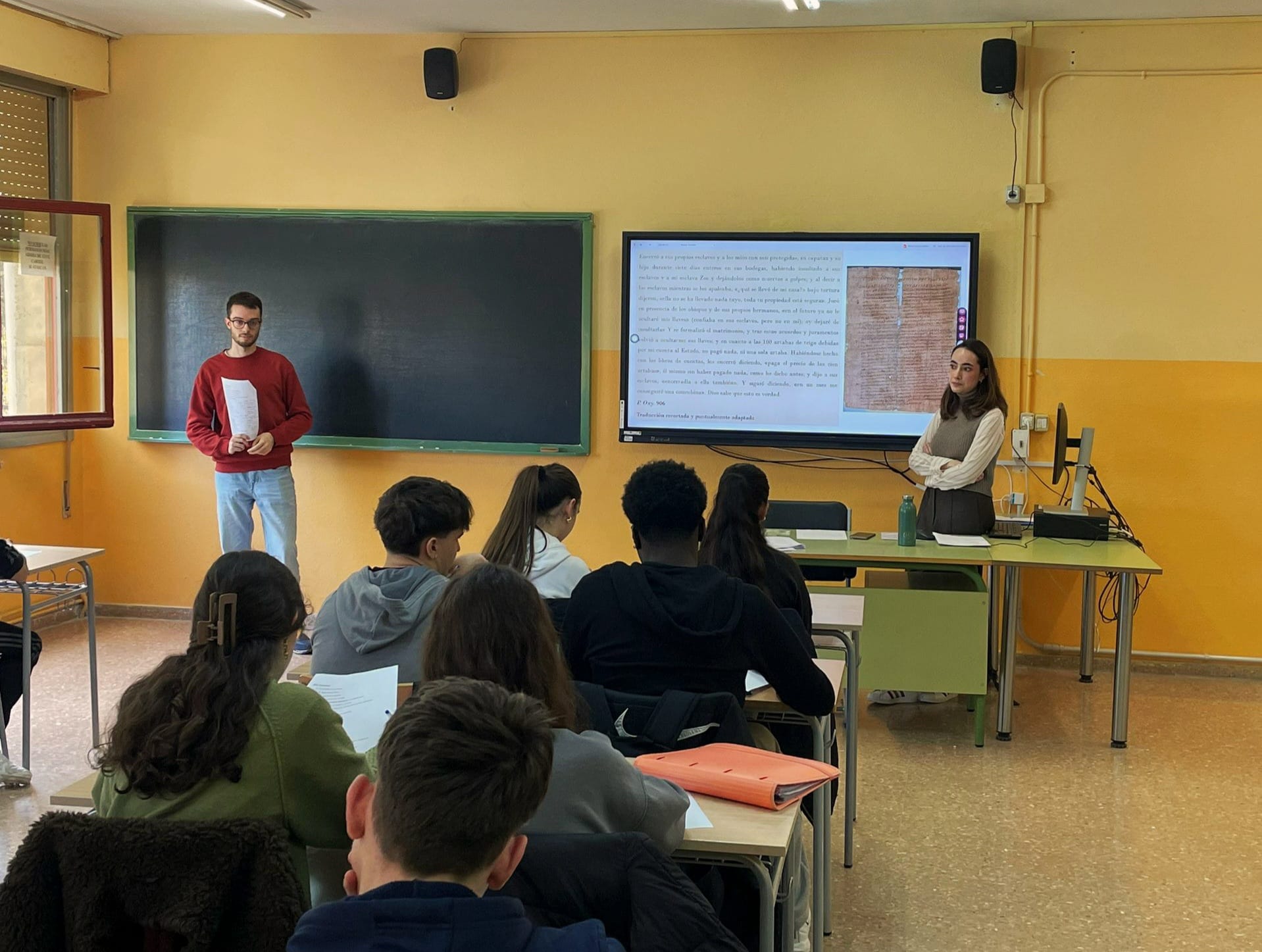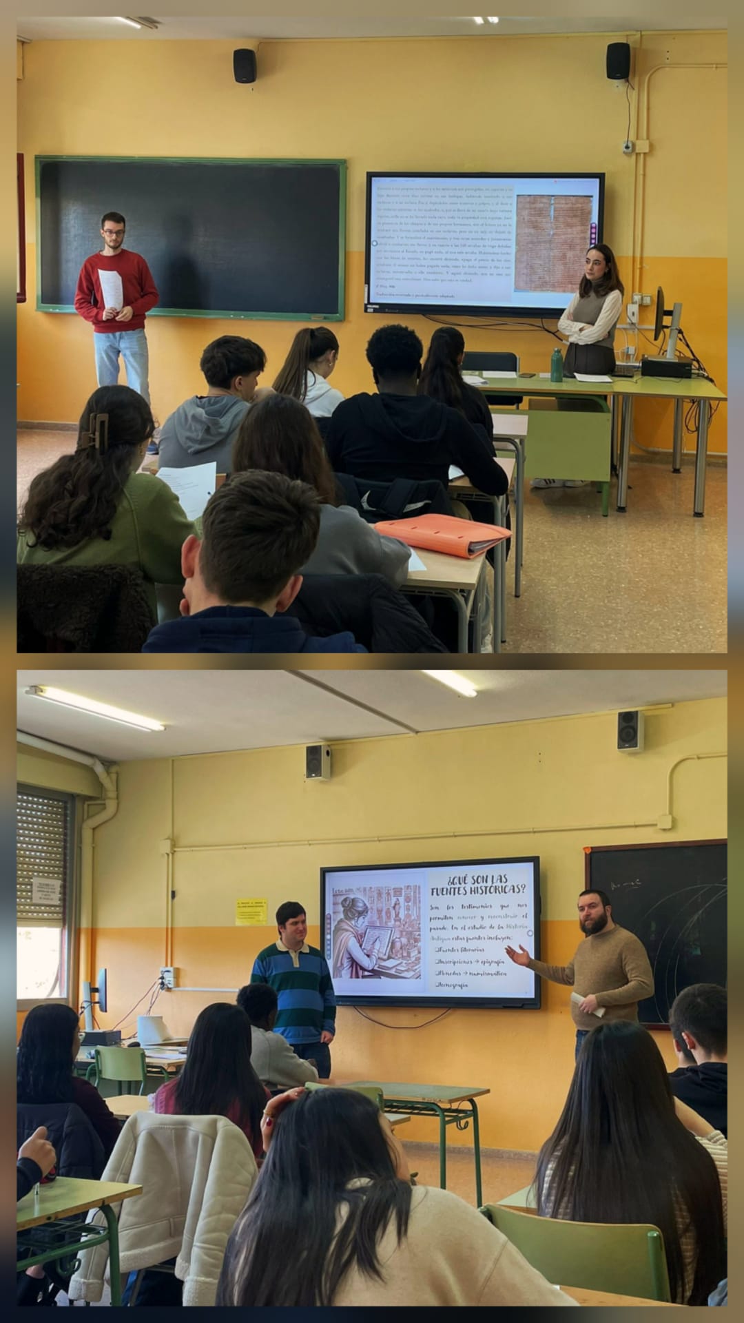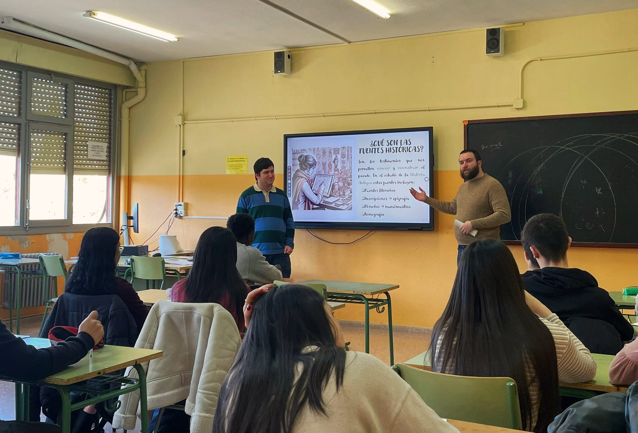 El pasado día 12 de febrero Julia Sebastián Rodríguez, Adrián Hammant Palacio, Carlos González Catalán y Carlos Suárez Cortés, investigadores predoctorales del área de Historia antigua, visitaron a los alumnos de 1º de Bachillerato del IES Ramón Pignatelli.